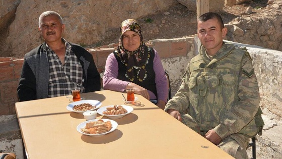 Şırnak'ın Uludere ilçesi Altıntepe Hudut Karakolunda nöbet tutan asker, Osmaniye'nin Sumbas ilçesinde yaşayan anne ve babasını karşısında görünce şaşkınlık yaşadı.