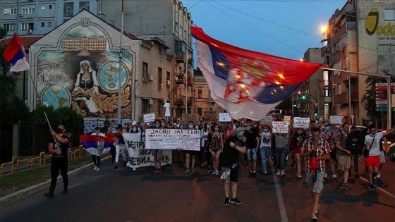 Sırbistan'da hükümet karşıtı protestolar Sırbistan'ın başkenti Belgrad'da yeni salgın tedbirlerinin açıklanmasının ardından başlayan ancak ülke geneline yayılarak geniş katılımlı hükümet karşıtı protestolara dönüşen gösteriler bugün de devam etti. Nis şehrinde toplanan bir grup gösterici, polis güçlerinin oluşturduğu güvenlik kordonu önünde oturma eylemi gerçekleştirdi. ( Sasa Djordjevic - Anadolu Ajansı ) Belgrad'daki gösterinin merkezi yeniden ulusal meclis binası önündeki meydan olurken, olaysız geçen protestoya katılan Belgradlılar, attıkları sloganlar ve taşıdıkları dövizlerle hükümete tepki gösterdi.