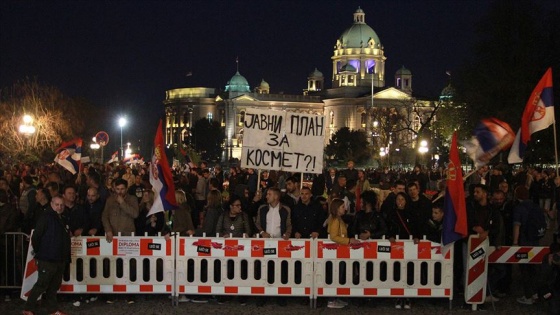 Bu hafta 18'incisi düzenlenen protestoya katılanlar, Sırbistan vatandaşlarına 13 Nisan'da meclis binası önünde toplanma çağrısında bulundu.