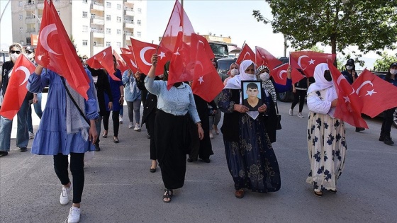 Ellerinde Türk bayrakları ve dağa kaçırılan çocuklarının fotoğrafları bulunan aileler, "Kahrolsun PKK, iş birlikçi HDP", "Şehitler ölmez, vatan bölünmez", Kahrolsun PKK", "Kürt-Türk kardeştir, ayrım yapan kalleştir" sloganları attı.