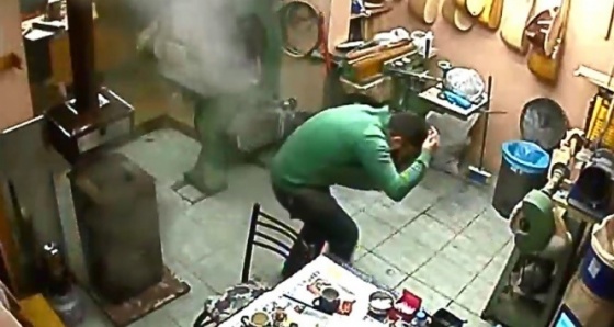 Yakutiye ilçesinde Kenan Topal atölyesinde bulunan sıcak sobanın içerisine bağlama yapımında kullanılan polyesteri döktü. Bunan üzerine soba bomba gibi patlarken Kenan Topal atölyesinde ölümün eşiğinden döndü. Patlama anı atölyede bulunan güvenlik kamerasına an be an yansıdı. Topal’ın kafasında ve elinde birinci derece hafif yanıklar, atölyede de maddi hasar oluştu. Topal yaşadığı acı tecrübeden kendisine ders çıkararak yanıcı maddelerle kesinlikle soba tutuşturulmaması tavsiyesinde bulundu.