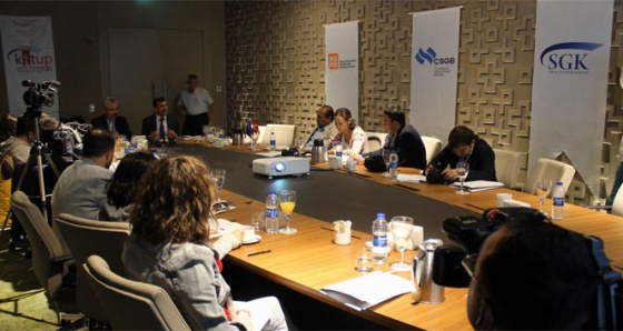 Toplantıda konuşan SGK Kayıt Dışı İstihdamla Mücadele Daire Başkanı Yakup Süngü, Türkiye’de geçmiş yıllarda kayıt dışı çalışan kişi sayısının yüzde 52’lerden yüzde 32’ye kadar düştüğünü söyledi. Süngü, “Kayıt dışı istihdam, bir işyerinde çalışan kişinin sigortalı olarak kurumlara bildirilmemesi veya sigortası yapıldığı halde ücretinin düşük bildirilmesidir. Yaşlandığımız ya da malul olduğumuz zaman bize aylık bağlanması için konulmuş olan bir sistemdir.