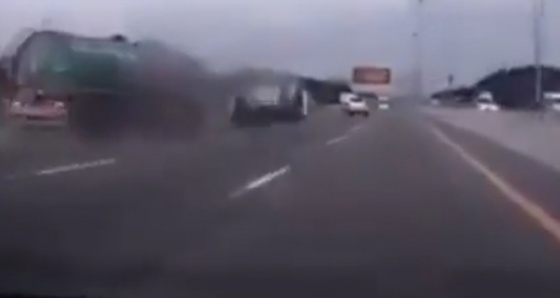 Tayland’ın başkenti Bangkok’ta bir otomobil sürücüsü, aracıyla seyir halindeyken uyuya kaldı. Sürücünün uyuya kalmasıyla kontrolden çıkan araç o sırada aynı yöne seyreden bir tankere çarparak defalarca takla attı.