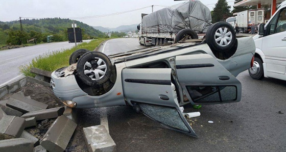 Kaza, Bolu’da D-100 Karayolu Abant Kavşağı’nda meydana geldi. Edinilen bilgiye göre, İstanbul istikametine seyir halinde olan 14 EY 403 plakalı otomobil sürücüsü Muhammet S. yağmur nedeniyle kayganlaşan yolda kontrolden çıkarak orta refüje çarptı. Çarpmanın etkisiyle takla atarak ters dönen araçtaki sürücü Muhammet S. ile eşi S.S. yaralandı. Çevredeki diğer sürücüler tarafından olay yerine çağrılan 112 Sağlık ekiplerinin ilk müdahalesini yaptığı yaralılar tedavileri yapılmak üzere İzzet Baysal Devlet Hastanesi Köroğlu Ünitesi'ne kaldırıldılar. Polis kazayla ilgili soruşturma başlattı.