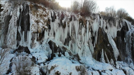 Ziyaretçilerine her mevsim ayrı güzellik sunan şelalede oluşan 6-7 metrelik buz sarkıtları, seyrine doyumsuz manzara ortaya çıkardı.
