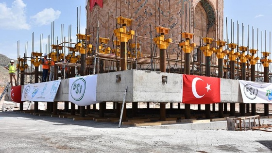 "Önce türbenin etrafına 30 santimetre kalındığında beton döküldü ardından kaldırmak için 28 kiriş ve taşıma plağı yerleştirildi ve 44 kriko konuldu. Daha sonra 1,5 metre kaldırıldıktan sonra taşıma sistemiyle buraya getirildi. Getirildiği alanda temel beton hazırlıkları yapıldı. Temel betonun içerisinde 8 deprem izolatörü var. Bu sistem büyük hastanelerde kullanılıyor. Temel betonun içerisine 7 şiddetinde depremi izole edecek sistem yerleştirildi. Türbeyi yapıştırma harcıyla zeminle buluşturacağız. Daha sonra beton plağını kırdıktan sonra orijinal haliyle burada kalacak."