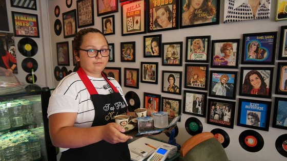 "Eski şarkıları çok seviyoruz. Yeni şarkılar hiç bunlara benzemiyor." diyen Taş Plak Kahvecisi'ni işleten Zeynep Ataselim, kahvenin duvarını da süsleyen plak ve plak kapaklarını eşi ve kızıyla tanıdıklarından toplayarak bir arşiv oluşturduklarını belirtti.