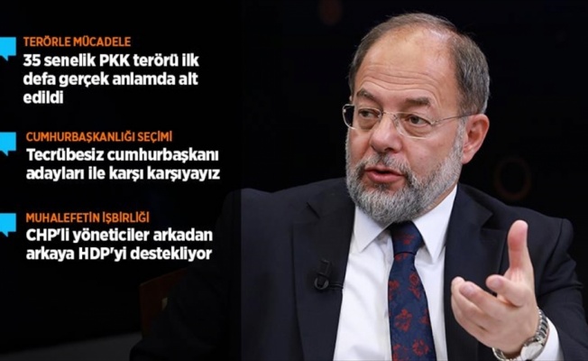 Başbakan Yardımcısı Recep Akdağ, "Cumhurbaşkanımız dışında ülke yönetme açısından son derece tecrübesiz cumhurbaşkanı adayları ile karşı karşıyayız." dedi. Başbakan Yardımcısı Recep Akdağ, AA Editör Masası'nda gündeme ilişkin soruları yanıtladı, değerlendirmelerde bulundu.
