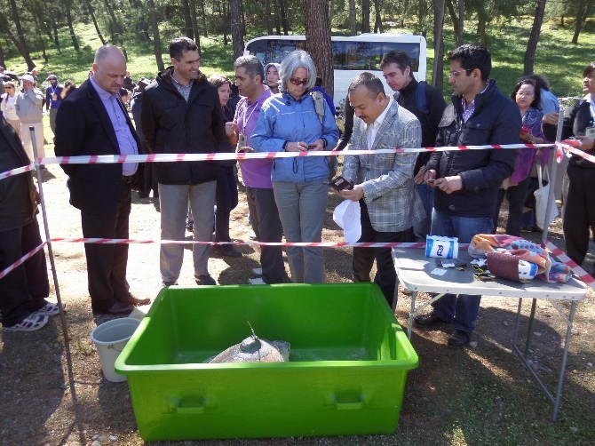 Tedavi edilen deniz kaplumbağaları törenle uğurlandı