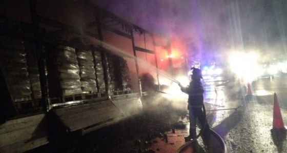 Edinilen bilgiye göre, dün gece TEM Otoyolu’nun Çaydurt mevkiinde salça yüklü yabancı plakalı TIR’ın dorsesi bilinmeyen bir nedenle yanmaya başladı. Alev alev yanan TIR’ın dorsesi yanarak kül olurken, Bolu Belediyesi İtfaiye Müdürlüğü ekiplerinin çalışması sonrasında yangın kontrol altına alındı. Öte yandan yangın anı bir amatör kamera tarafından kaydedildi. ,