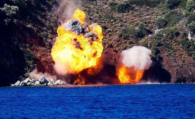 Deniz Kuvvetleri Komutanlığına ait AB-212 tipi helikopterden denize atlayan iki SAS personeli, yüzerek mayınlı bölgeye geldi. Buradaki hazırlıkların ardından mayını imha eden iki personel botla bölgeden alındı.