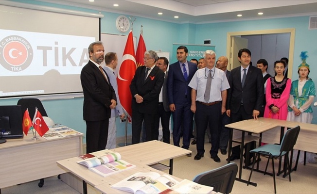 BİŞKEK (AA) - Kırgızistan'da Türkçe öğretiminin yaygınlaştırılmasına yönelik başlatılan Yunus Emre Enstitüsü Türkoloji Projesi kapsamında üniversitedeki Türkçe sınıfına tadilat ve tefrişat desteği yapıldı.