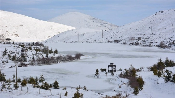 Sivas'ta Yıldız Göleti'nin yüzeyi buz tuttu