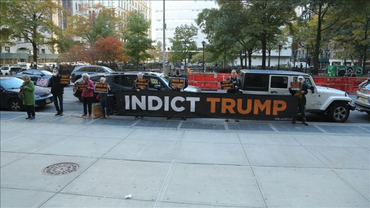 Trump'ın 6 Ocak Kongre baskını davasını da üstlenen avukatı William J. Brennan, Manhattan'daki mahkeme binası girişinde "Kimse kanunun üzerinde olamaz" yazılı dövizler taşıyan küçük bir grup tarafından protesto edildi.