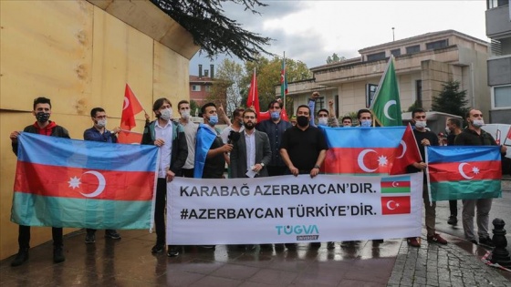 Türkiye Gençlik Vakfı (TÜGVA) üniversite koordinatörlüğü üyeleri, Beşiktaş'taki Azerbaycan İstanbul Başkonsolosluğu önünde Ermenistan'ın Azerbaycan topraklarına saldırısını protesto edip Azerbaycan'a destek için basın açıklaması yaptı.