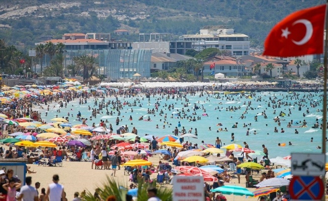 Ünlü Ilıca Plajı, yeni tip koronavirüs (Kovid-19) sürecinde en kalabalık günlerinden birini yaşadı.