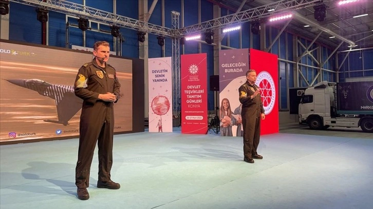 Türk Hava Kuvvetlerinin gösteri takımı SOLOTÜRK'ün pilotları, Cumhurbaşkanlığı İletişim Başkanlığı tarafından Konya'da gençlere yönelik düzenlenen "Devlet Teşvikleri Tanıtım Günleri"nde gençlerle bir araya geldi