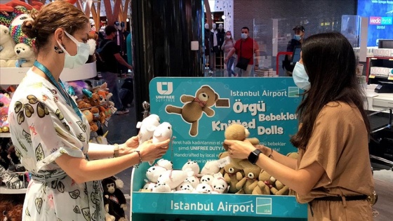 "Kadın Elinden Çocuk Kalbine" projesi kapsamında eğitim alan kadınların ördüğü tavşan, ayı, koala, panda ve foktan oluşan 5 oyuncak modelindeki 1000 bebek, İstanbul Havalimanı Unifree mağazasında satışa sunuldu.