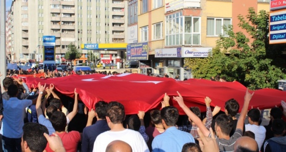 Yozgat Esentepe mevkiinde 20 metre uzunluğundaki Türk bayrağı ile yaklaşık 3 kilometre yürüdü. “Şehitler Ölmez Vatan Bölünmez, Ne Mutlu Türk Diyene , Her Türk Asker Doğar, Kahrolsun PKK’ gibi slogan atan işçiler, terörü lanetledi.