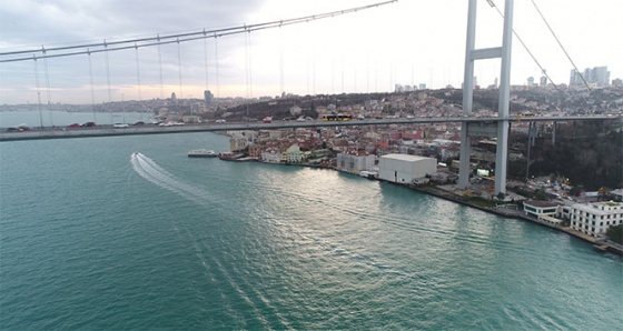Turkuaz rengine bürünen İstanbul Boğazı görenleri kendine hayran bıraktı. Boğaz'a güzellik katan turkuaz rengindeki manzara ise havadan görüntülendi.