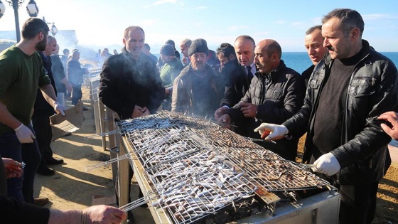 Belediye görevlileri tarafından pişirilen üç ton hamsi, festivale katılanlar tarafından bir saatte tüketildi.
