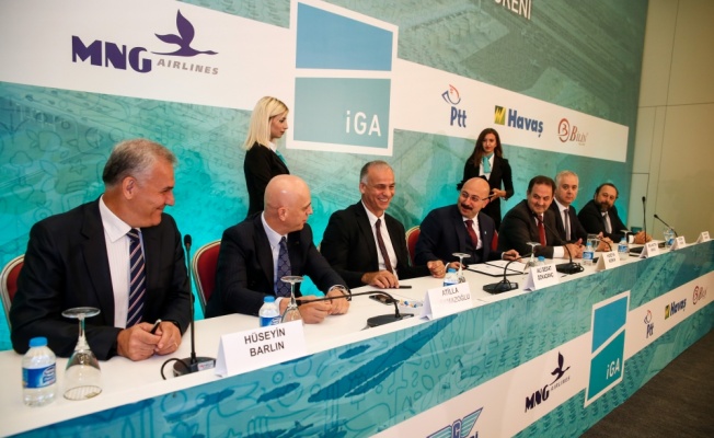 - İGA Havalimanı İşletmesi AŞ ile 6 şirket arasında Kargo Şehri ve Yer Hizmetleri Kampüsü için alan tahsis sözleşmesi imzalandı. 250 milyon avroluk anlaşmalar 25 yıllık işletme süresince geçerli olacak - Anlaşma kapsamında MNG, PTT, Çelebi Hava Servisi, HAVAŞ, Sistem Lojistik ve Bilin Lojistik kargo şehrinde, MNG, Çelebi Hava Servisi ve HAVAŞ ise yer hizmetleri kampüsünde hizmet verecek - İGA Havalimanı İşletmesi İcra Kurulu Başkanı Keskin: - "Bugün havacılıkta son dönemde imzalanan en büyük anlaşma olarak nitelendirebileceğimiz bir anlaşmaya imza atıyoruz" - "Şu an itibariyla kiralanabilir alanların yüzde 50'sini kiraladık"