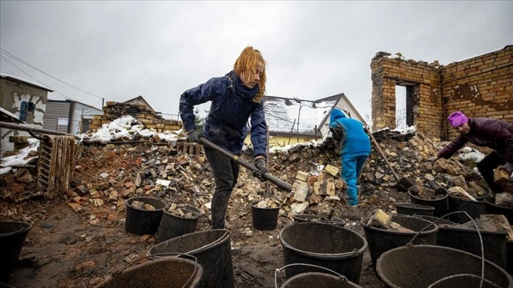 Anadolu Ajansı (AA) ekibi, savaşta tahrip olan başkent Kiev yakınlarında yer alan Moşçun köyündeki çalışmaları görüntüledi.