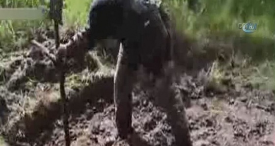 Rusya’nın Kırım’ı ilhak etmesinin ardından Ukrayna’nın doğusunda başlayan çatışmalar devam ederken, Rus kanalı Zvezda Ukraynalı askerlerin Rus ayrılıkçıyı diri diri gömüldüğünü iddia eden görüntüleri yayınladı. Amatör kamera tarafından kaydedilen görüntülerde, 4 Ukraynalı askerin bir Rus ayrılıkçıyı daha önceden kazılmış bir çukura zorla attığı görülüyor. Üniformalı Ukraynalı askerler Rus ayrılıkçı için “henüz ölmedi” diyerek bağırırken, Rus ayrılıkçının canlı olduğu ve mezarın içinde ayağını oynattığı dikkat çekti. Rus ayrılıkçının diri diri gömülmesinin ardından askerlerden biri, küreğini mezar taşı gibi mezara sapladı.