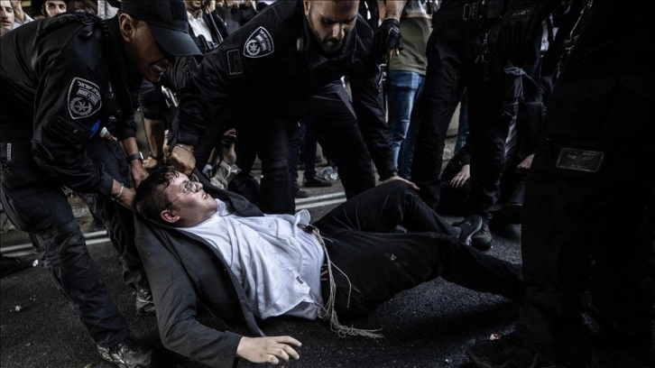 Polis, direnen en az 10 Harediyi gözaltına aldı.