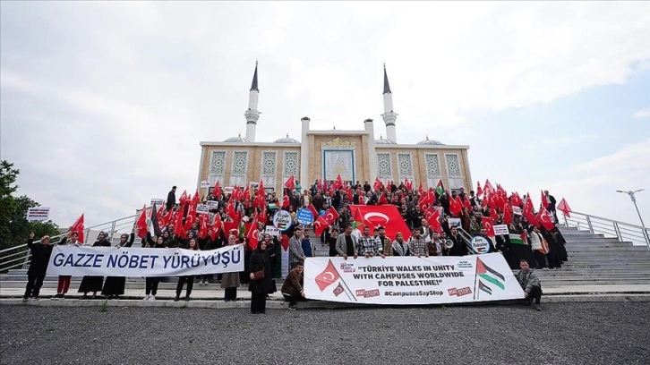 Üniversite kampüsü alanında bulunan Gelin Paşa Camii avlusunda bir araya gelen öğrenci ve akademisyenler, ellerinde Türk ve Filistin bayrakları, Türkçe ile İngilizce yazılı dövizler ve pankartlarla Rektörlük binasına İsrail aleyhine sloganlar atarak yürüdü.