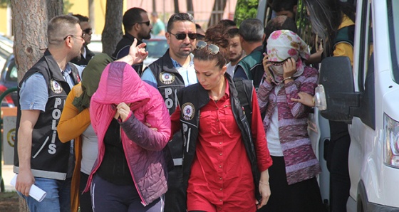 Şafak vakti 500 polisle adrese yapılan operasyonda Meltem A. (26), sevgilisi Servet B. (33), Mevlüde Ç. (28) ve Ceylan B. (19) ile birlikte 15 kişi gözaltına alındı.