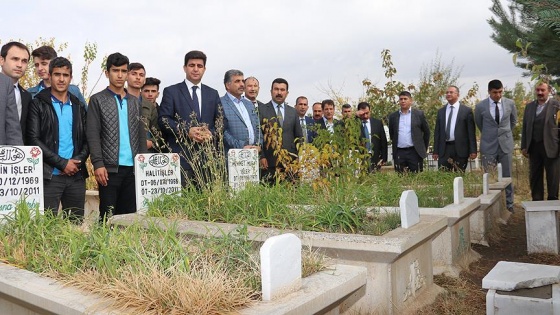 Burada depremde hayatını kaybeden öğretmenler için dua eden Şimşek ve beraberindekiler, ardından mezarlara gül bıraktı.