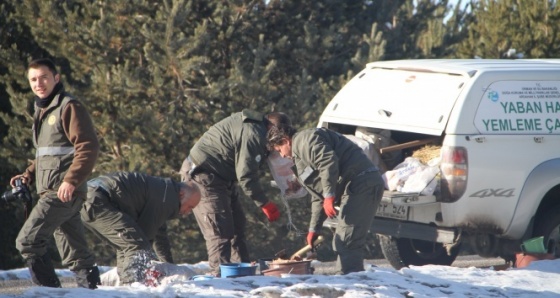 Hanak Kaymakamı Adem Uslan, Orman ve Su İşleri Şube Müdürlüğü ekipleri ile birlikte, yaban hayvanları için doğaya yem bırakarak, belirli bölgelere foto kapan yerleştirdi. İlçede Kaymakam Adem Uslan, Belediye Başkanı Ayhan Büyükkaya ve protokol, yaban hayvanlarının imdadına yetişti. Protokol, ilçenin Baştoklu Köyü deresi ile Camışboğan ormanlık alanlarında belirlenen yerlere sakatat, yem ve ot bıraktı. Hanak Kaymakamı Adem Uslan, Ecdadımızın yaptığı işleri biz burada torunları olarak yapıyoruz diyerek, "Kış koşullarının devam ettiği Ocak ve Şubat aylarında ve Türkiye’nin en ağır kış koşullarının yaşandığı ilimizde yaban hayatındaki hayvanları korumak, şehirlere inmelerini önlemek ve toplumsal duyarlılığı sağlamak amacıyla buradayız. Biz Osmanlı torunları olarak? Osmanlı bunu derneklerle, vakıflarla yapıyordu. Günümüzde de Orman ve Su İşleri Bakanlığının il müdürlüğü aracılığıyla bu işler yapılıyor. Ecdadımızın yaptığı işleri biz burada torunları olarak yapıyoruz. İnşallah vatandaşlar da bu konuda duyarlı olur." şeklinde konuştu. Hanak Belediye Başkanı Ayhan Büyükkaya ise, "Öncelikte Orman Su İşleri Bölge müdürlüğüne teşekkür ediyorum. Gerçekten 1800 metre yükseklikte 6 ay 180 gün kar altında kalan bu doğada yaban hayvanlarını korumak için bize bu konuda önderlik ettiler. Bu bir doğa, bu bir çevre, bu bir sevgidir, o nedenle bu sevgiyi, bu doğa sevgisini, hayvan sevgisini, kuş sevgisini geleceğimize aktarmak için buradayız." dedi. Orman ve Su İşleri Şube Müdürü Temel Şimşek, "Orman ve Su İşleri Bakanlığımız, Doğa koruma Milli Parklar Genel Müdürlüğü Ardahan il şube müdürlüğü olarak bizler doğada yaşayan yaban hayvanları için yoğun kış şartlarının yaşandığı bölgemizde, yaban hayvanlarının hayatlarını sürdürebilmesi için ve yırtıcılara yem olmaması için kış ayları geldiğinde besin takviyesi uygulaması başlattık. Ardahan ilimizde devam etmekte olan bu uygulamalarımızı ilçelerimizde de devam ettireceğiz. Bu yıl 2 ton parça tavuk eti, 1,5 ton buğday ve 700 kilogram ot aldık. Otlarımızı yöremizde yaşayan ve göç etmeyen Karacalar için, tavuk etimizi yöremizde bulunan Kurt, Çakal, Tilki gibi hayvanların ve yine kuşlarımızdan yaban ördeği, yaban kazı, Keklik, Serçe kuşu ve kargalar gibi göç etmeyen kuşlarımızın yoğun kar yağışı ve sert geçen kış koşulları nedeniyle beslenmek için doğaya bırakmaktayız. Biz canlılara önem veren bir medeniyetin mensubuyuz. Burada yaptığımız çalışmayla birlikte halkımızın da yaban hayatına karşı duyarlılığını artırmak ve gerek evcil hayvanlar gerek, gerek yaban hayvanları, gerek sokak hayvanlarına karşı vatandaşların basın yoluyla bu gibi çalışmaları gördüğünde onların da doğada ve sokaklardaki hayvanlar için yemleme yaptığını görüyoruz." dedi.