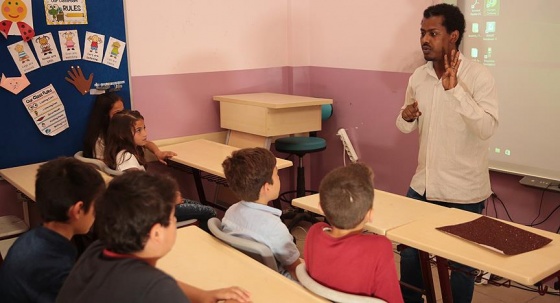 Kocaeli Üniversitesi'nde eğitim gören yabancı öğrenciler, kentteki ortaokul öğrencilerine gönüllü İngilizce eğitimi veriyor.
