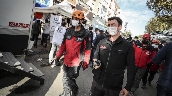 İzmir'deki depremde yıkılan binalarda arama kurtarma çalışmalarına katılan yabancı uyruklu gönüllüler, enkaz altındakilerin kurtarılması için çaba sarf ediyor.