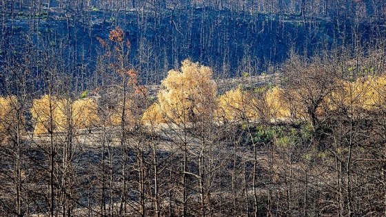 Alevlerden tamamen zarar gören ağaçların siyaha döndüğü yerlerde, yanmayanlar ise sonbahar renklerine büründü. Bitki örtüsünün de yer yer yeşermeye başladığı görüldü.