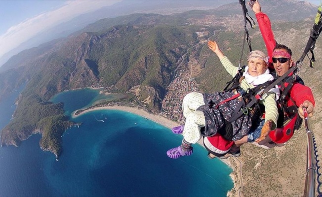 MUĞLA (AA) - Muğla'nın Fethiye ilçesindeki Babadağ'dan geçen yıl torunuyla uçuş yapan 87 yaşındaki Halime Akcan'ın görüntüleri, sosyal medyada büyük ilgi gördü.