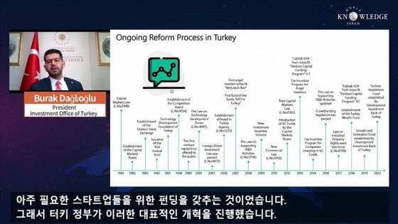 Ankara Cumhurbaşkanlığı Yatırım Ofisi Başkanı Ahmet Burak Dağlıoğlu, Seul'de düzenlenen Dünya Bilgi Forumunda (WKF) yaptığı konuşmada, Türkiye'nin girişimcilik ve start-up ekosistemi hakkında bilgiler paylaşarak Koreli yatırımcıları Türkiye'ye yatırım yapmaya davet etti.