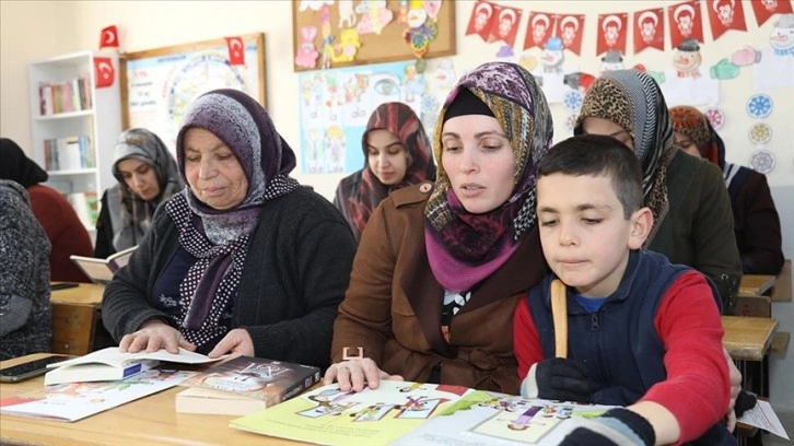 İlkokul binasında biçki dikiş ve okuma yazma kursuna katılan kadınlara ilkokul öğretmeni Nazile Yeşilli tarafından çocuk gelişimi üzerine eğitimler de veriliyor.