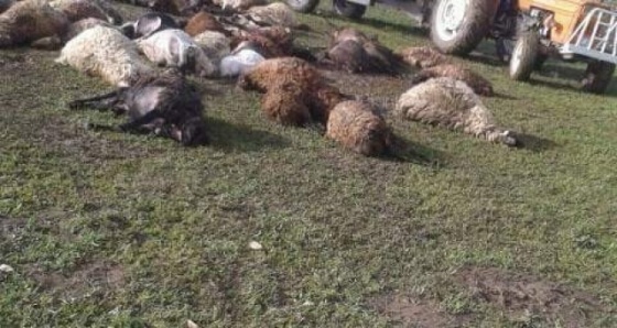Olay bugün sabah saatlerinde Erzurum’un Tekman ilçesi İncesu Mahallesi’nde meydana geldi. Sağanak yağmurun etkili olmasıyla birlikte üzerine yıldırım düşen sürüdeki 36 koyun telef oldu. Yıldırımın düştüğü alana şans eseri 10 metre mesafede bulunan ve olaydan yara almadan kurtulan çobanlar gözyaşlarını tutamadı.