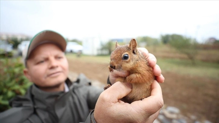 Düzce'de yuvasından düşen yaralı sincap yavrusuna, Düzce Doğa Koruma ve Milli Parklar Şube Müdürlüğüne bağlı rehabilitasyon merkezinde şefkatle bakılıyor.