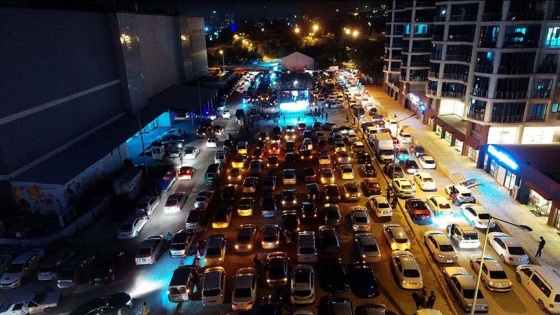 İzmit ilçesindeki Uluslararası Fuar Merkezi otoparkındaki etkinliğe araçlarıyla katılanlar, alanın girişinde kuyruk oluşturdu.