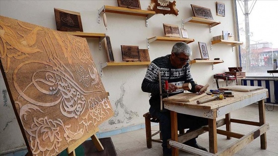 Bitlis'in Ahlat ilçesinde, ahşap oyma ustası Osman Gülsar, hat yazıları ile Selçuklu ve Osmanlı dönemine ait motifleri ahşaba işleyerek sanatını yaşatıyor.