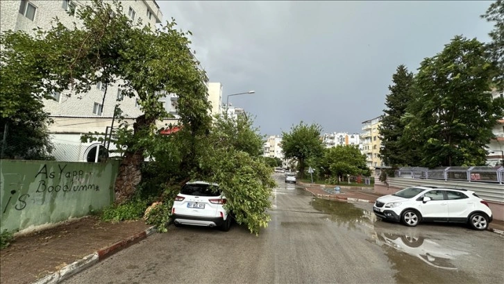 Fırtına nedeniyle bazı ağaçlar araçların üzerine devrildi, işletmeler uçuşan şemsiye ve tezgahlarını tutmaya çalıştı.