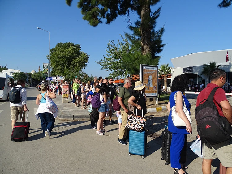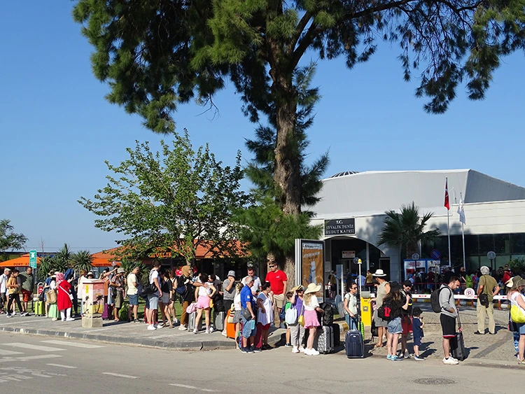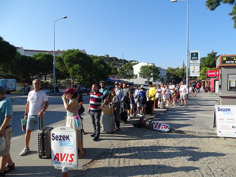 İstanbul, İzmir, Bursa, Ankara, Muğla, Balıkesir, Manisa ve Kocaeli gibi büyükşehirlerden gelen tatilciler, Ayvalık Deniz Hudut Kapısı önünde kuyruklar oluşturdu.
