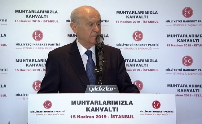 “23 Haziran’da İstanbullu kardeşlerim sandık başına giderken, yaşanan skandalları, oy hırsızlıklarını dikkate alıp oylarını kullanacaklardır” diyen Bahçeli, “CHP adayının mağdur olduğunu söyleyenler, hakkı olmadan hanesine yazılan 16 bin oy görmelilerdir. İstanbul’a bulaşan şaibenin arkasında hangi güçler bulunmaktadır? Bu sorunun cevapları yapılan araştırmalar sonucunda ortaya çıkacaktır. CHP adayına kimler hangi güvenceyi vermiştir ki, YSK sonucu açıklamadan Anıtkabir’in yolunu tutup kendini başkan göstermiştir. CHP adayı nereden güç almaktadır ki Ordu Valisine pervasızca küfür savurabilmiştir. CHP adayının hiddet ve öfkesi, arkasında duran karanlık güçlerden kaynaklanmaktadır. Her şerde bir hayır vardır. İstanbul için hayırlı olan da 23 Haziran’da yapılacak olan seçimdir” şeklinde konuştu.