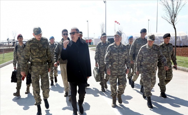 Milli Savunma Bakanı Hulusi Akar, beraberinde Genelkurmay Başkanı Orgeneral Yaşar Güler ve Kara Kuvvetleri Komutanı Orgeneral Ümit Dündar ile Suriye sınırının sıfır noktasındaki birliklerde inceleme ve denetlemelerde bulunuyor.