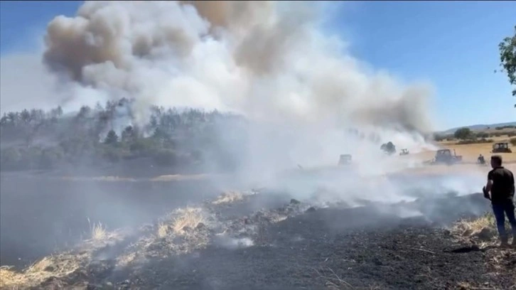 Balıkesir'de anızda başlayıp ağaçlandırma sahasına sıçrayan yangına müdahale ediliyor