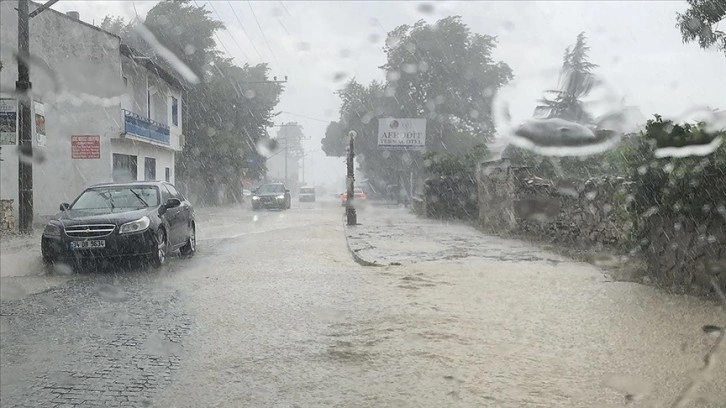 Güre Mahallesi'nde aniden başlayan ve yaklaşık 1 saat süren şiddetli yağmur, denizde ve havuzlarda bulunan tatilcilere zor anlar yaşattı.
