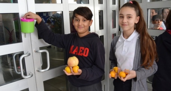 Okul girişine konulan meyve dolabının çeşitli mevsim meyveleri ile doldurulmasıyla başlayan projede, raflardan istediği meyveyi seçen öğrenciler, yedikleri meyvenin ücretini dolabın yanındaki kumbaraya atıyor.
